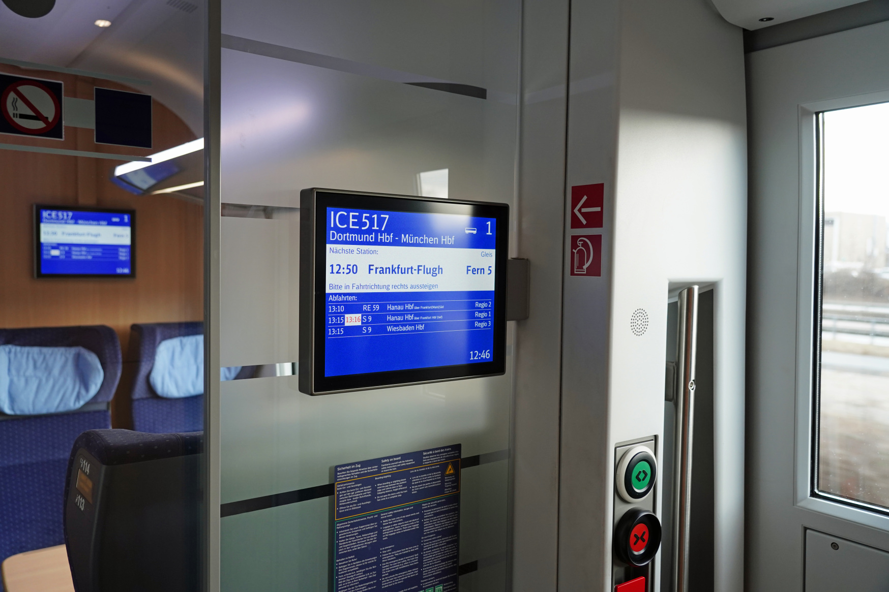 In Verbindung mit dem neuen Sitzsystem wird so ein größeres Sitzplatzangebot bei gleichbleibender Beinfreiheit und zusätzlich mehr Stauraum für Gepäck erreicht. Der moderne Sitz zeichnet sich durch eine schlanke Rückenlehne aus, wobei diese beim Verstellen nicht nach hinten, sondern in den Sitzrahmen gleitet. Kopfstützen mit seitlicher Abstützung für entspanntes Sitzen nehmen gangseitig Haltegriff, Platznummer und Reservierungsdisplay auf. Der ICE 4 sorgt mit einer tageszeitabhängigen Steuerung von Lichtintensität und -farbe für ein angenehmes Ambiente in den Fahrgasträumen. Das derzeitige Einsatzgebiet sind überwiegend die Nord-Süd-Relationen, darunter Hamburg–Berlin–Nürnberg–München über die VDE 8 und seit Dezember 2019 auch Hamburg–Frankfurt–Zürich.
