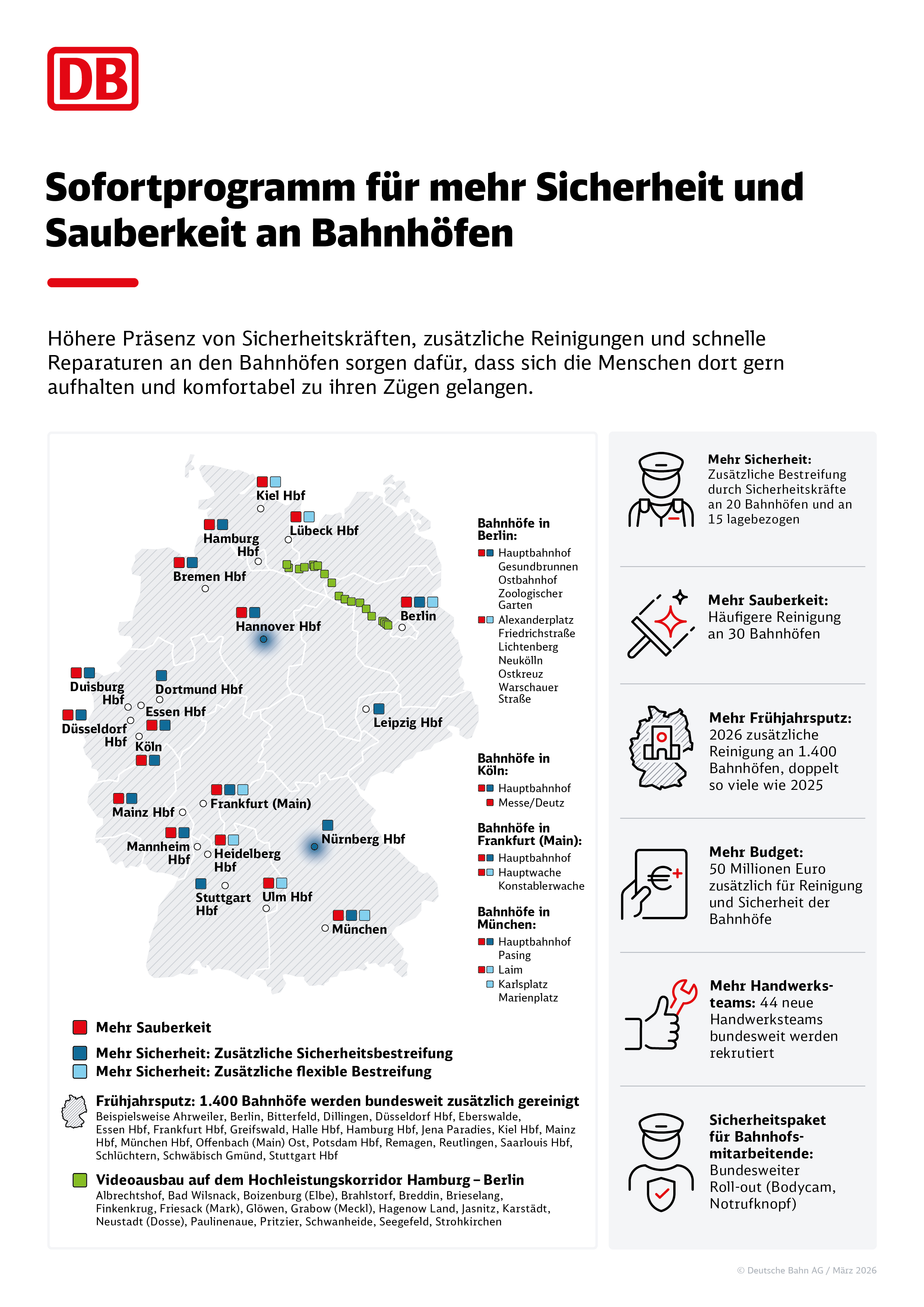 - 50 Millionen Euro zusätzlich für die Reinigung und Sicherheit der Bahnhöfe