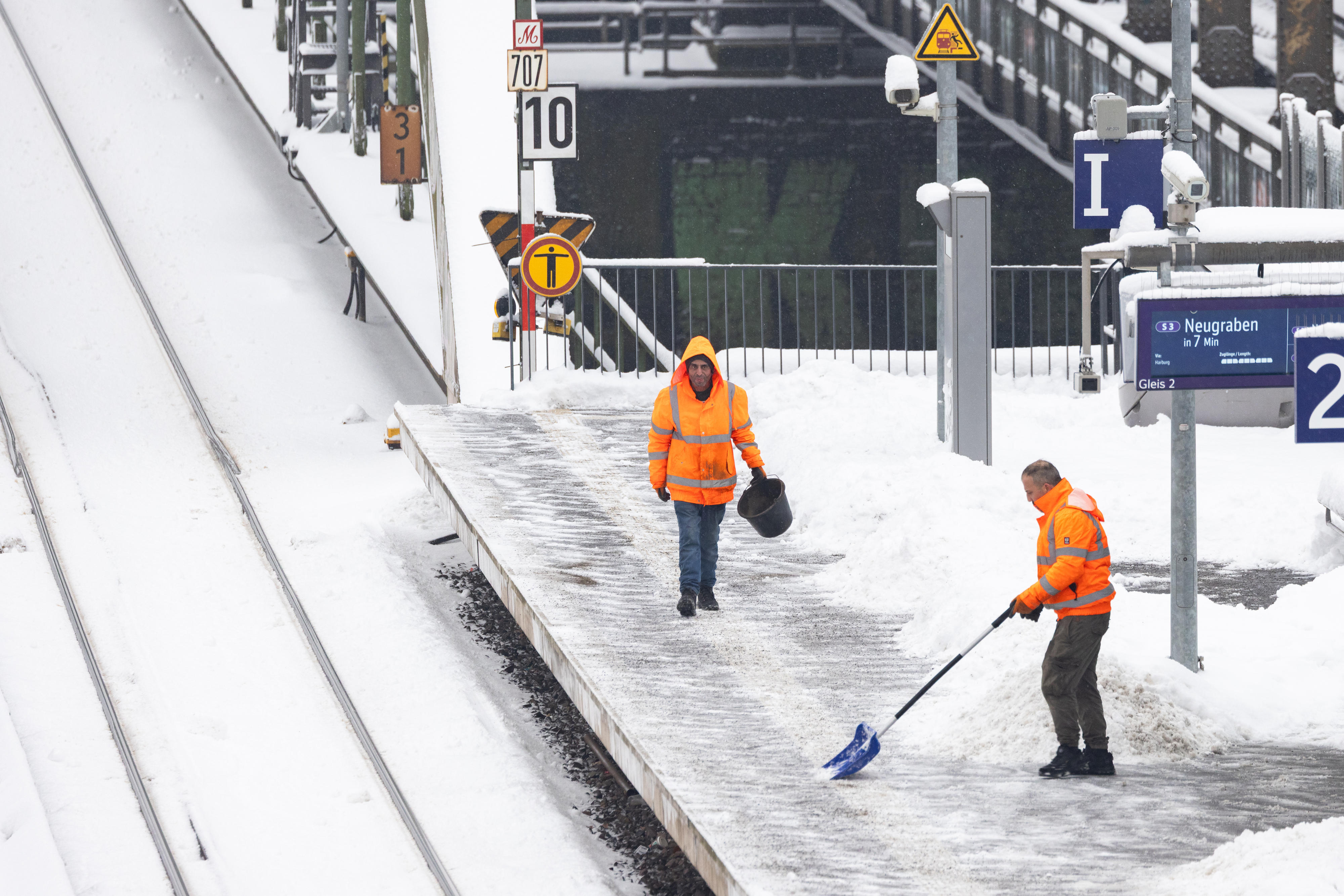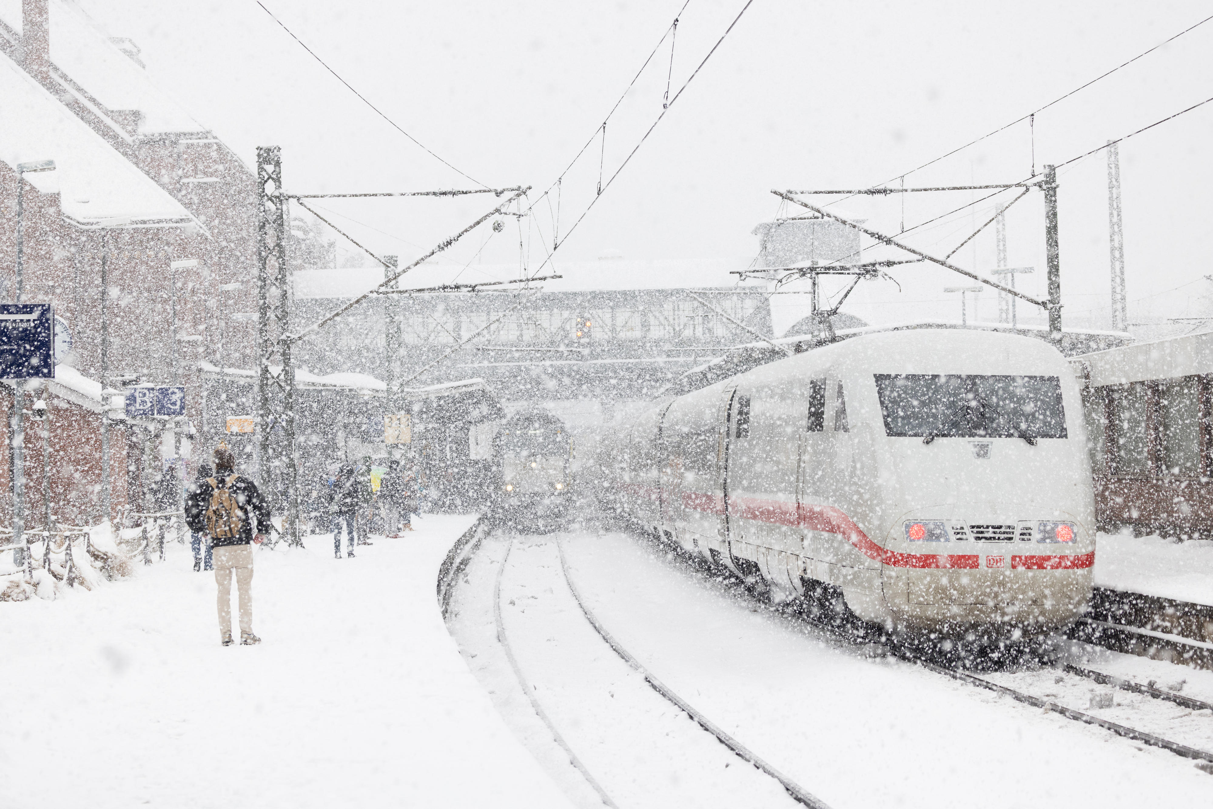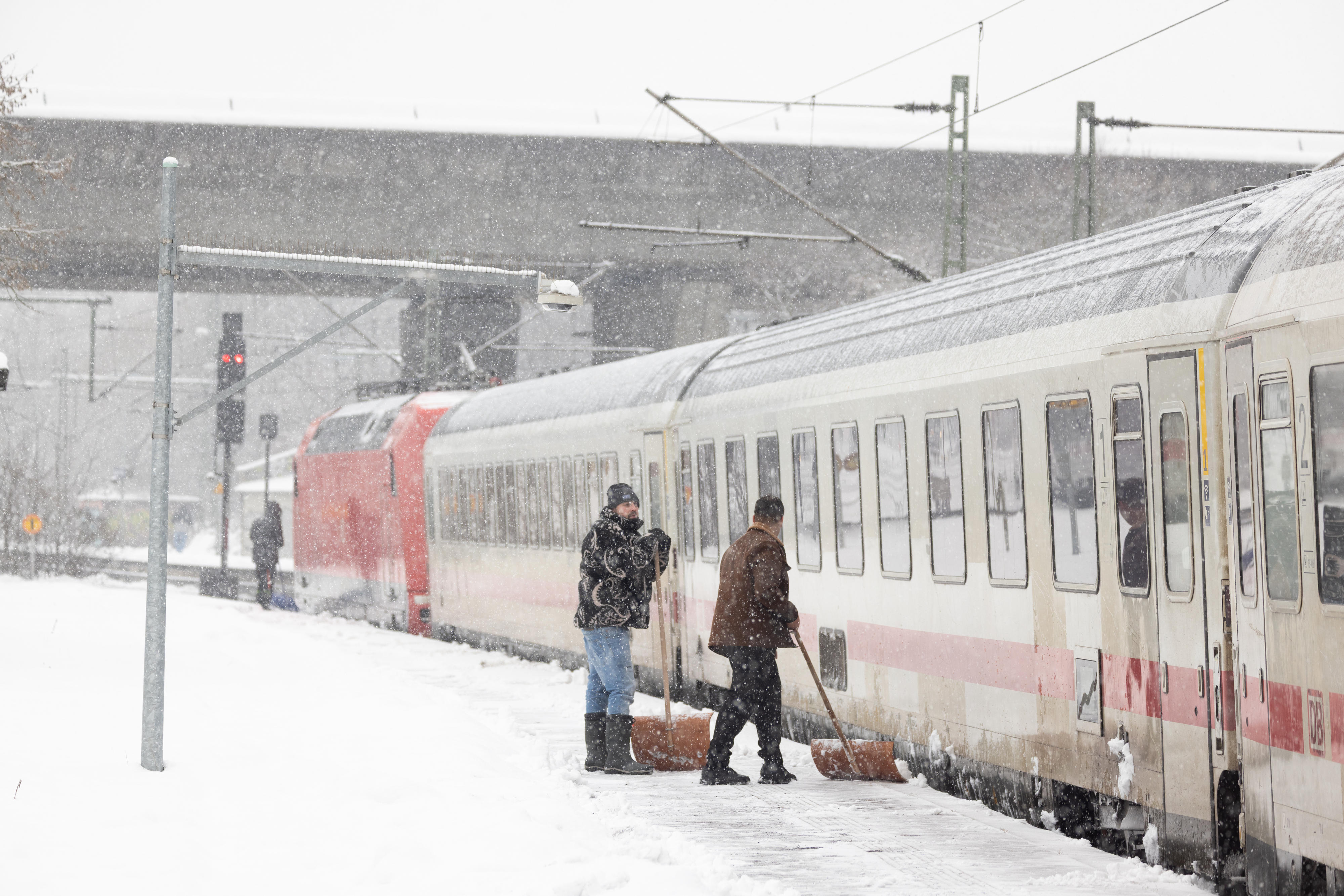 Tausende DB-Mitarbeitende sind ununterbrochen im Einsatz, um die Strecken wieder befahrbar zu machen und die Bahnsteige von den Schneemengen zu räumen. Wir bedanken uns bei unseren Fahrgästen, dass viele nicht notwendige Fahrten verschoben haben und freuen uns, sie zu einem späteren Zeitpunkt in unseren Zügen begrüßen zu dürfen.