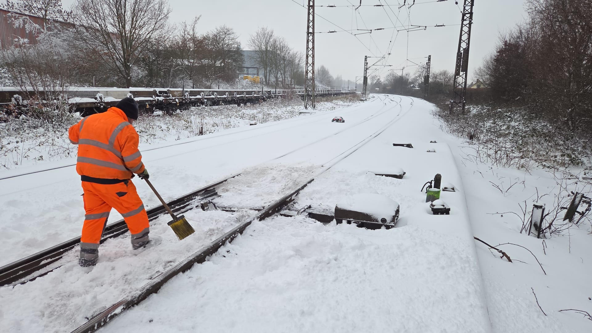 Auch in diesem Jahr haben wir unsere Wintervorbereitungen nochmal intensiviert. Mehr als 14.200 Mitarbeitende bundesweit sorgen dafür, Bahnsteige und Gleise schneller von Schnee und Eis zu befreien. An strategisch wichtigen Punkten im Schienennetz stehen Räumfahrzeuge und schwere Loks bereit, viele Weichen sind inzwischen mit Weichenheizungen und sogenannten Antriebsabdeckungen besser vor Schnee und Eis geschützt. Dennoch sind wir, so wie auch andere Verkehrsträger, auch bei bestmöglicher Vorbereitung nicht gegen alle Witterungen gefeit.