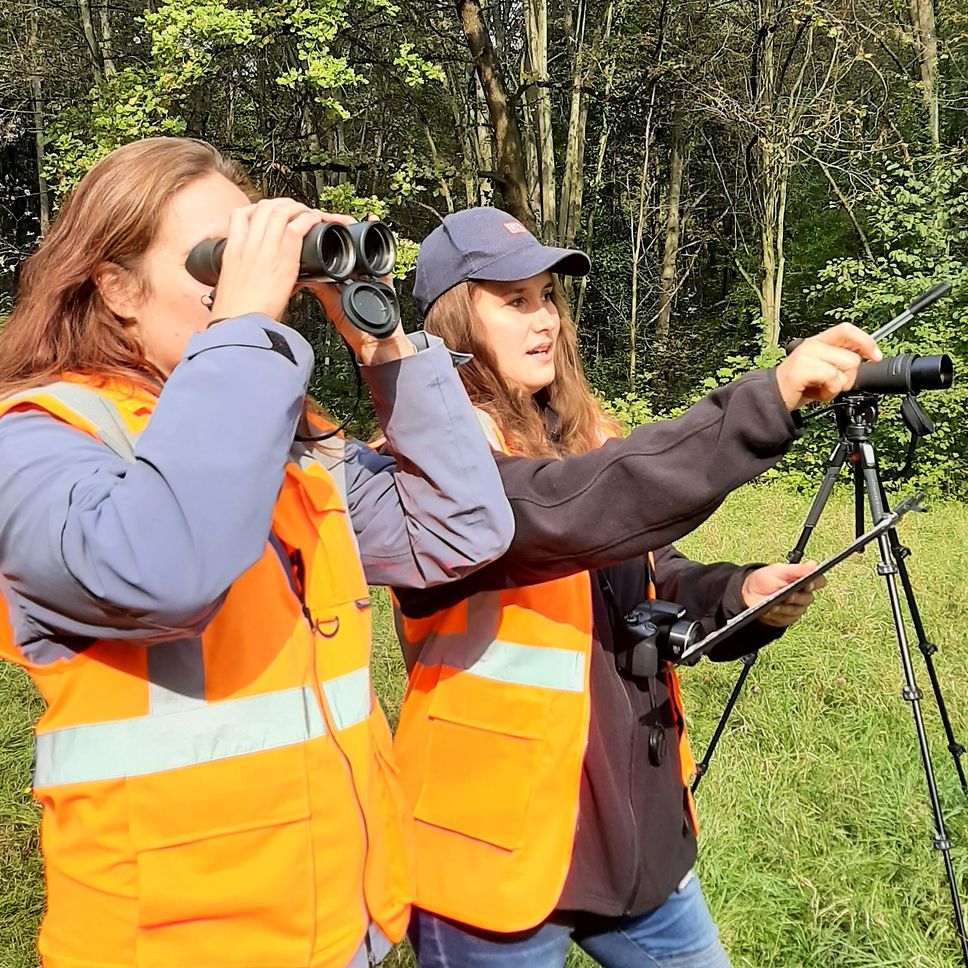 Unsere Ornithologinnen Rebecca und Katherina Fies beobachten und dokumentieren die Vogelwelt, in dem sie Vogelarten anhand ihrer Gesänge und Rufe kartieren. Ihre erhobenen Daten sind relevant für Umweltverträglichkeitsprüfungen – also die Frage, inwiefern der geplante Bau einer Bahntrasse oder Ähnliches die Vogelwelt stören könnte. Damit sorgen sie für die Umsetzung des Bundesnaturschutzgesetzes. Denn das besagt, dass alle europäischen Vogelarten geschützt sind. Wenn sie Arten finden, die zurzeit brüten, müssen gesonderte Schutzmaßnahmen getroffen werden.