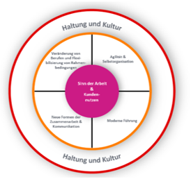 Agile Arbeitsweisen können bereits in bestehenden Strukturen sehr erfolgreich funktionieren. Es muss also gar nicht der "große" Wandel sein. Oft sind es bereits kleine Dinge, die uns voranbringen. Ebenso haben agile Methoden überall im Konzern Einzug gehalten: so arbeiten bereits sehr viele Mitarbeitende mit Kanban-Boards, Methoden zur Steigerung der Meeting-Effizienz oder kreativen Prozessen zur Ideenentwicklung in Berührung gekommen.
