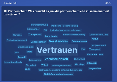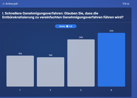 Unter Einbezug des Publikums wurden hierzu vier Fragen gestellt (siehe nachstehendes Ergebnis).