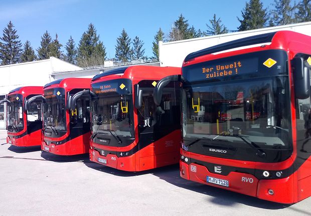 In Bayern sind die ersten Elektrobusse von DB Regio in Bad Tölz und im Allgäu in Oberstdorf unterwegs. Das Besondere dabei: Beim Bremsen und Bergab-Fahren gewinnen die Elektrobusse zusätzlich Energie zurück. Die Busse werden außerdem mit Ökostrom betrieben. Dafür hat DB Energie beispielsweise in Bad Tölz eigene Ladesäulen errichtet.