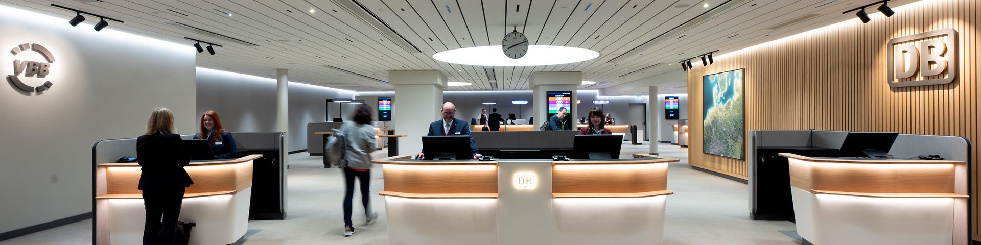 - einen einladenden Wartebereich für Reisende mit größerem Beratungsbedarfvielfältige Verbesserungen für Fahrgäste mit verschiedenen Mobilitätseinschränkungen, wie zum Beispiel absenkbarer Schalter für Reisende im Rollstuhl, Induktionsschleife für Menschen mit Hörgeräten und taktile Streifen am Boden