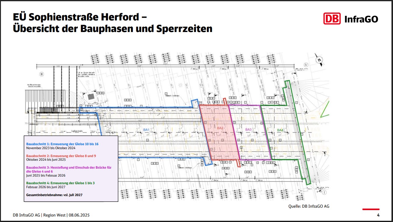 Die Deutsche Bahn (DB) erneuert seit Herbst 2023 die Eisenbahnüberführung (EÜ) "Sophienstraße" in Herford.