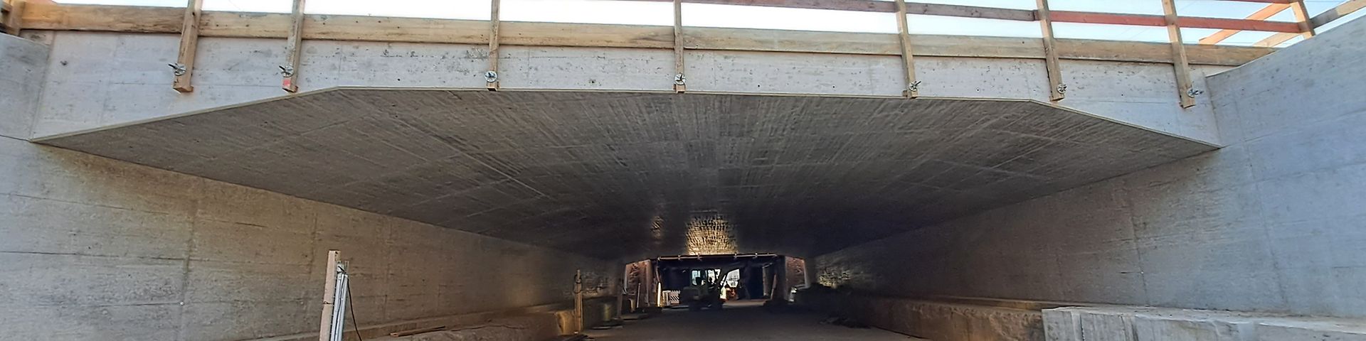 Bis Juni 2025 hat das Projektteam “unter rollendem Rad” Tiefgründungen im zweiten Brückenbereich hergestellt, den Fangedamm unter den bestehenden Gleisen weiter gebaut sowie Oberleitungsmaste gegründet. Im Frühjahr 2025 hat die DB die neue Stahlbetonbrücke im zweiten Brückenabschnitt hergestellt.