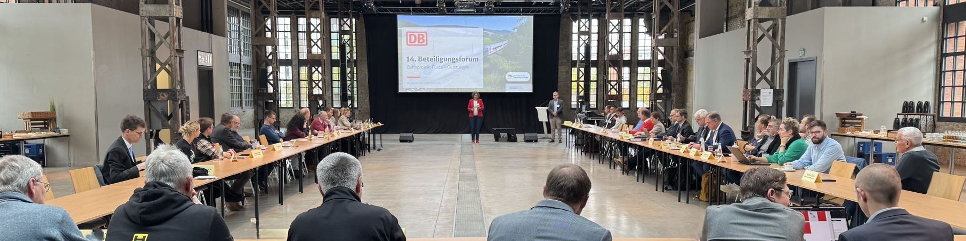 Das Beteiligungsforum zur Bahnstrecke Fulda–Gerstungen ist am 28. Oktober 2025 in Bad Hersfeld zu seiner 14. Sitzung zusammengekommen. Mehr als 50 Teilnehmende aus der Region haben sich mit der Deutschen Bahn (DB InfraGO AG) zum aktuellen Planungsstand und den Entwicklungen im Bahnprojekt Fulda–Gerstungen ausgetauscht. Mit dabei waren auch die beauftragten Ingenieurbüros Bosch & Partner sowie WBI GmbH.