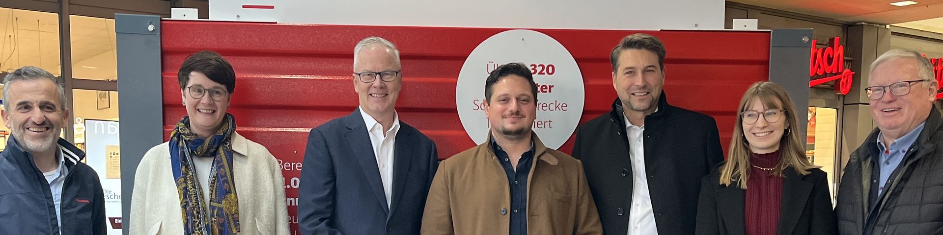 v.l.n.r.: Hasan Ilhan, Leiter Lärmsanierung Südwest DB, Ulrike Ludewig, Leiterin Portfolio Lärmsanierung DB, Dr. Klaus Vornhusen, Konzernbevollmächtigter der DB für Rheinland-Pfalz und Saarland, Hüseyin Cilingir, Projektleiter Lärmsanierung Saarbrücken DB, Uwe Conradt, Oberbürgermeister Saarbrücken, Jeanne Dillschneider, MdL Bündnis90/Die Grünen, Stefan Löw, MdL SPD. Foto: DB AG / Marina Kallis.