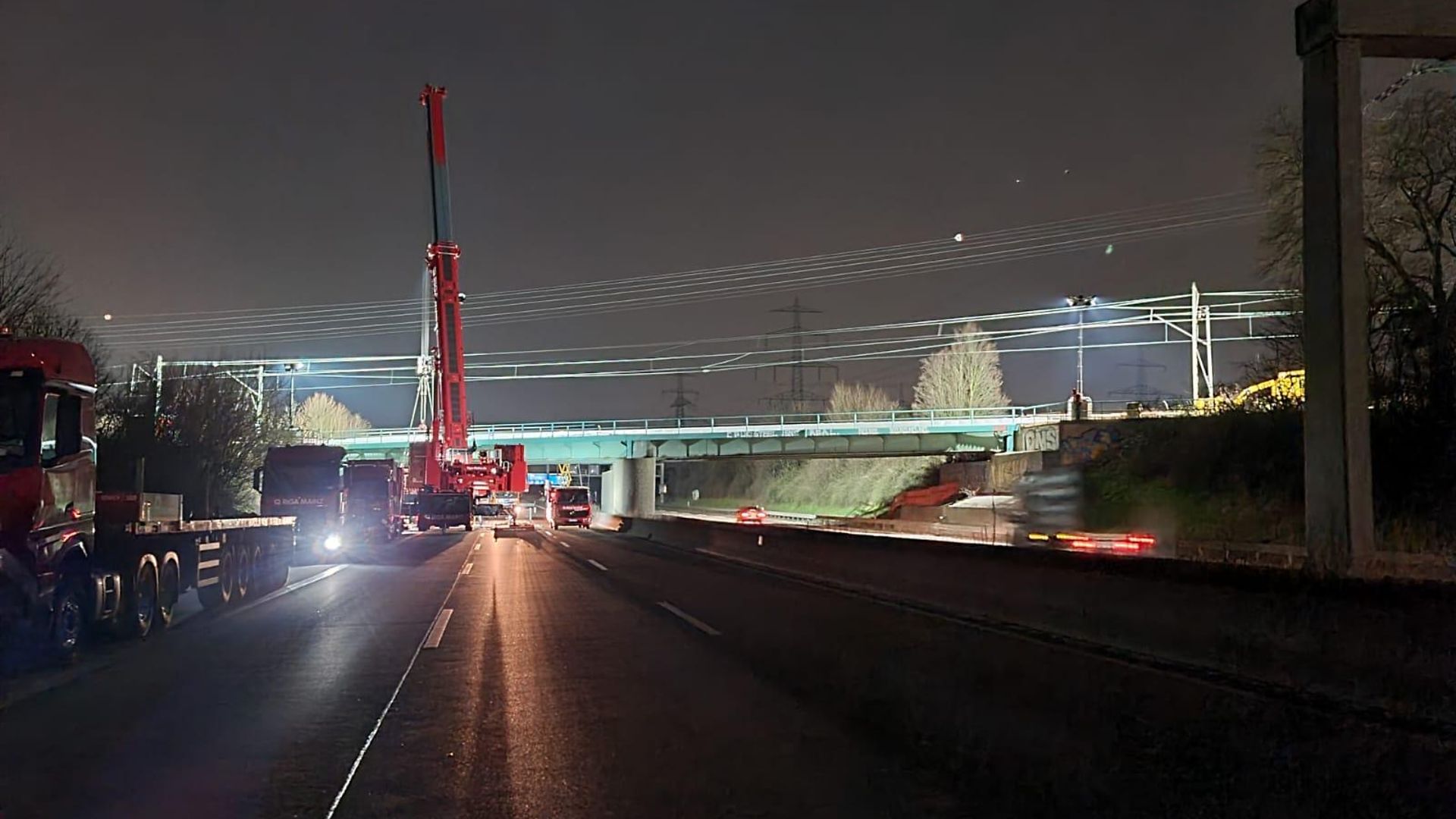 Artikel: Nach Anfahrschaden an Bahnbrücke über A5: Deutsche Bahn baut am Wochenende reparaturbedürftiges Brückenteil aus