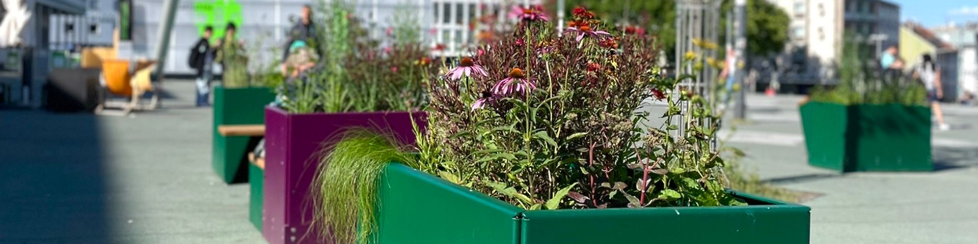 Warten auf den nächsten Zug, auf Freund:innen und Bekannte oder einfach mal hinsetzen und tief durchatmen – das kann man nicht nur im, sondern auch vor dem Kasseler Hauptbahnhof. Auf dem Vorplatz lädt die Deutsche Bahn (DB) mit sieben neuen, bepflanzten Sitzinseln zum Verweilen ein. Eine Aktion von Smart City, mit der die DB den Lebensalltag von Reisenden und Stadtbewohner:innen durch intelligente und umweltfreundliche Angebote vereinfachen möchte.