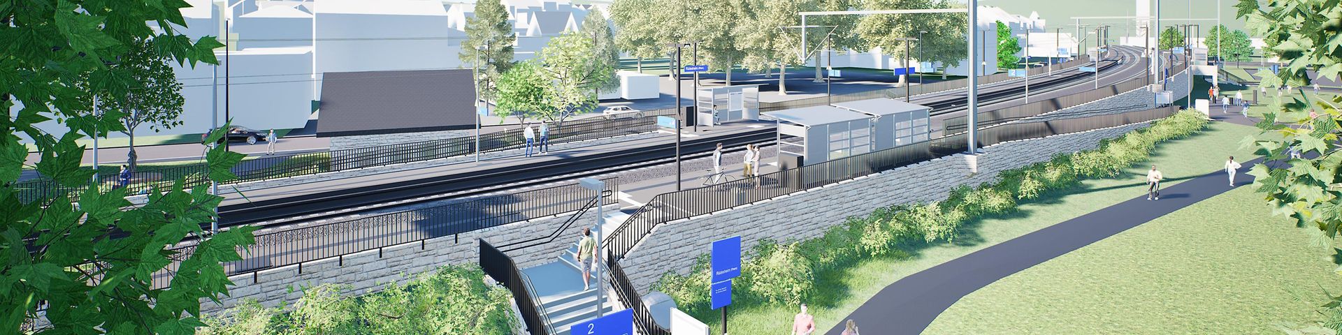 Die Deutsche Bahn (DB InfraGO AG) baut für die Fahrgäste eine neue Bahnstation in Rüdesheim.