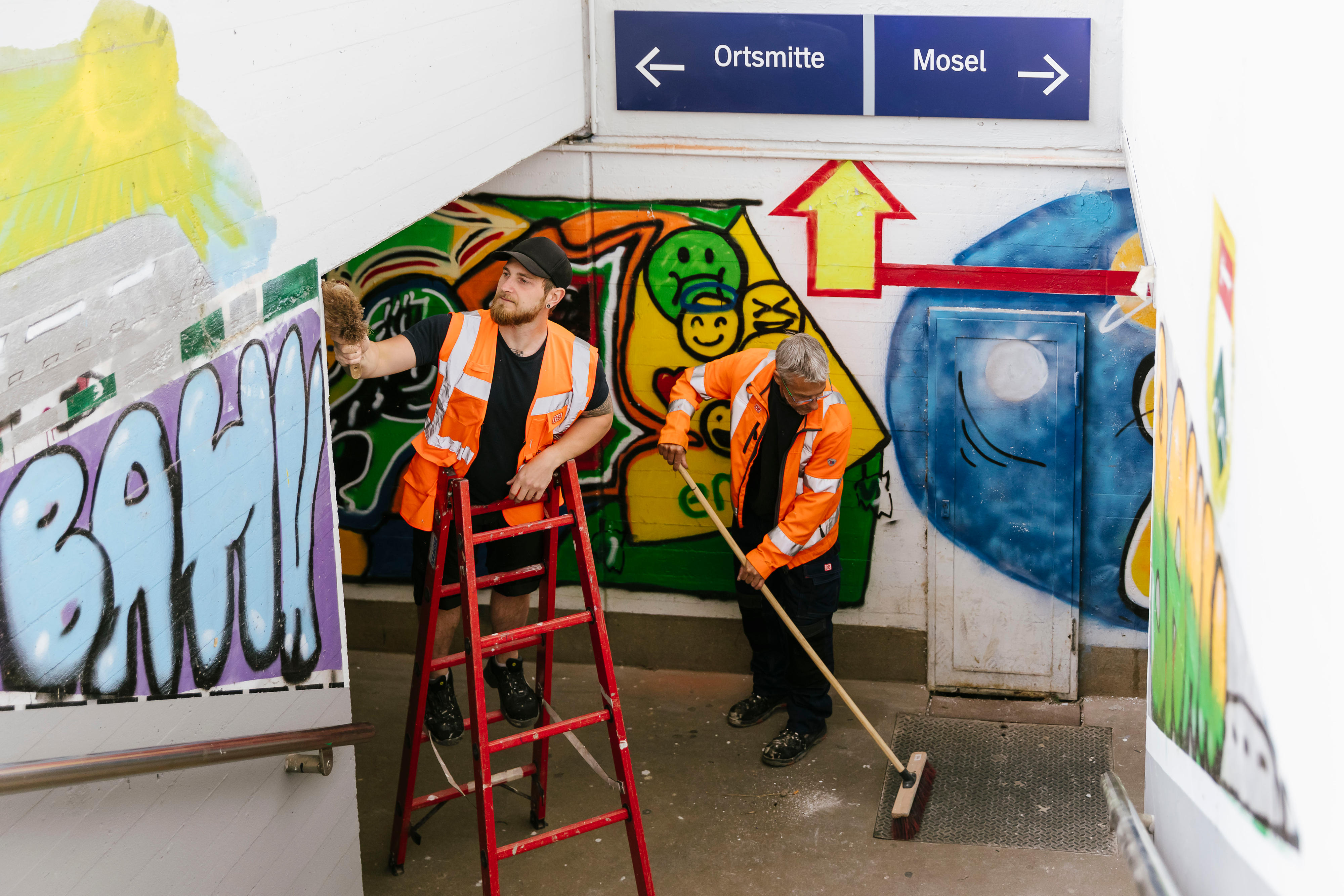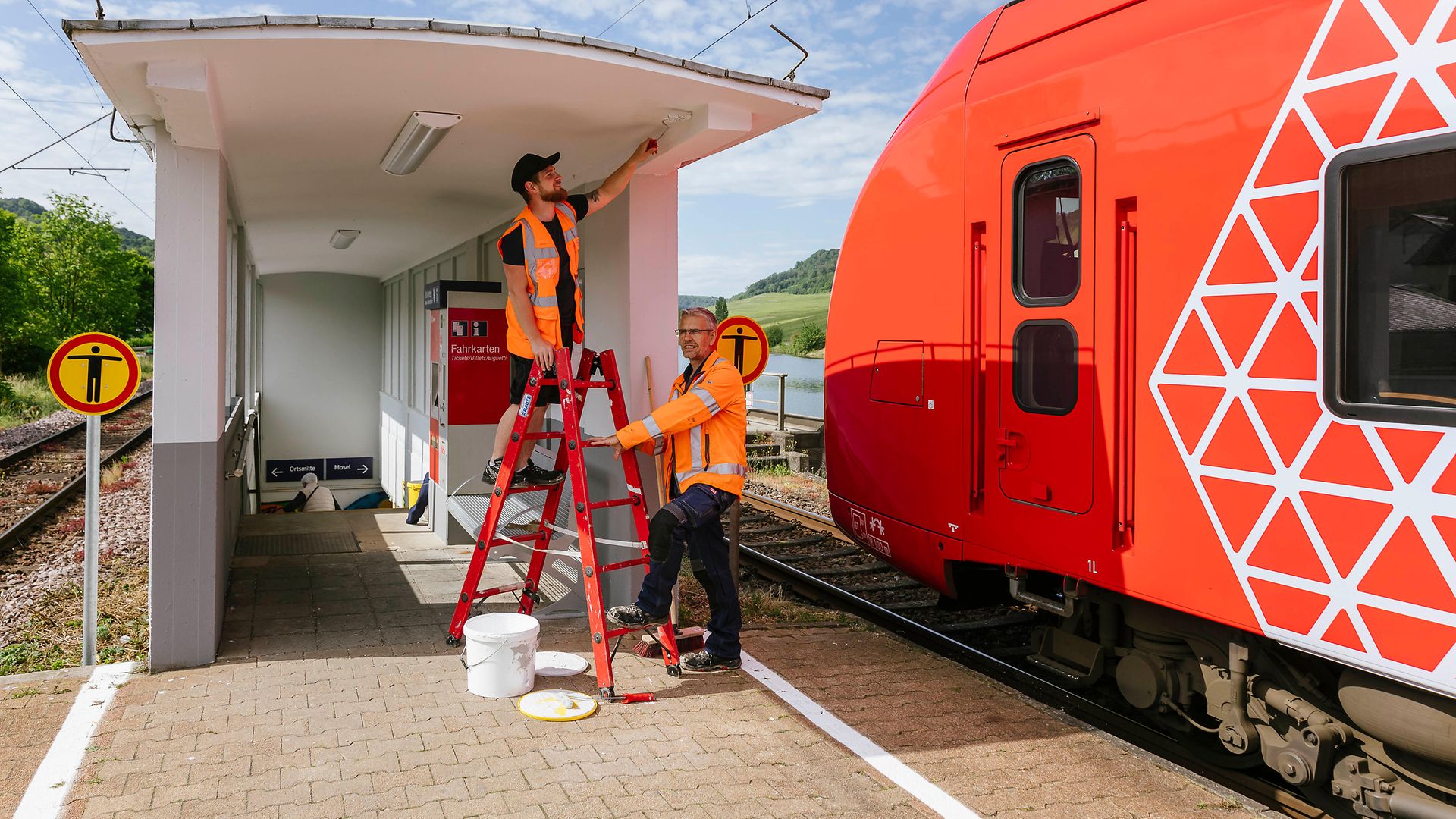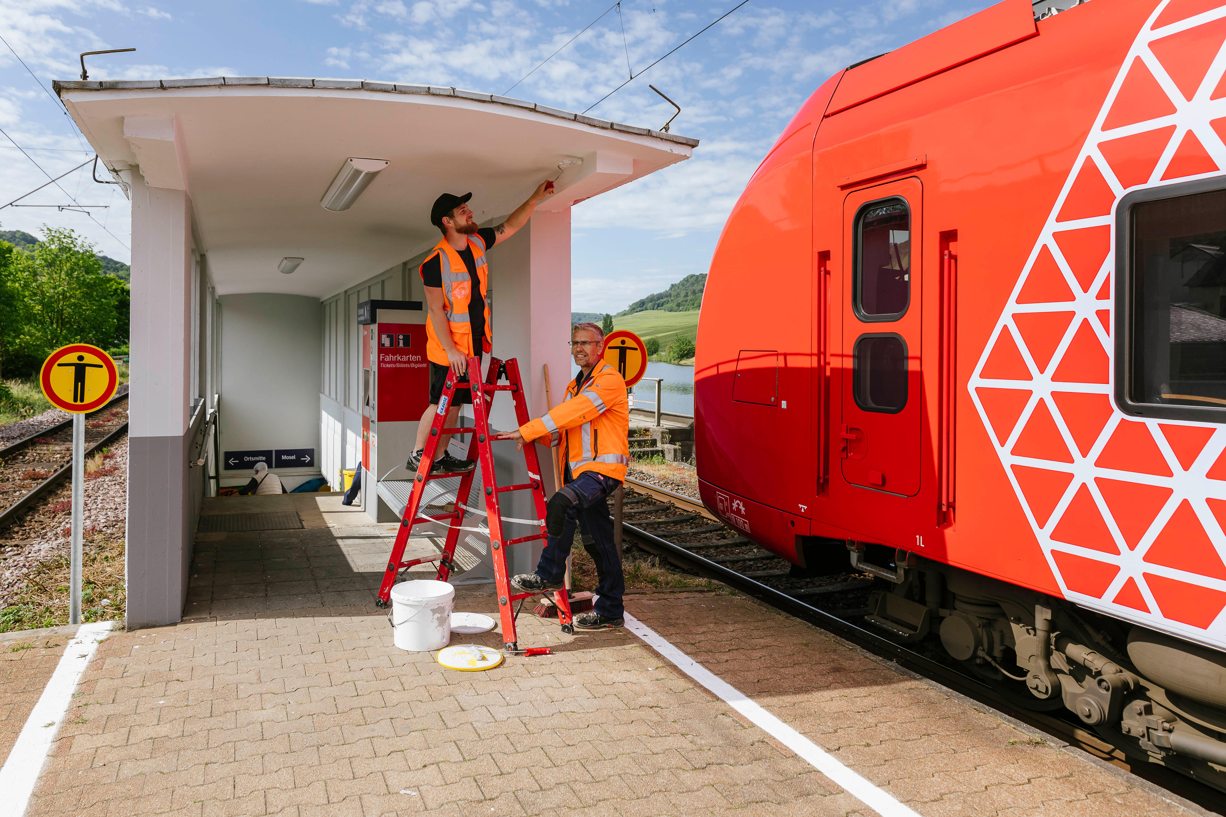 Verkehrsstationen für Reisende und Besucher:innen noch attraktiver und sauberer gestalten: dafür sind seit dem 1.Oktober letzten Jahres zusätzliche Stationsinspektor:innen im Einsatz, die die DB-Mitarbeitenden vor Ort unterstützen und verstärken, so auch am Standort Nittel. Gemeinsam arbeiten die Teams beispielsweise die Wetterschutzhäuser auf, führen kleinere Instandsetzungsarbeiten an Bahnsteigen und Treppen durch und tauschen Sitzbänke, Abfalleimer oder Vitrinen aus. Auch die Grünpflege auf dem Vorplatz, das Streichen der Unterführung und die Beseitigung von Graffiti werden gemeinsam erledigt. Die Kosten für die zusätzlichen Stationsinspektor:innen trägt der SPNV-Nord.