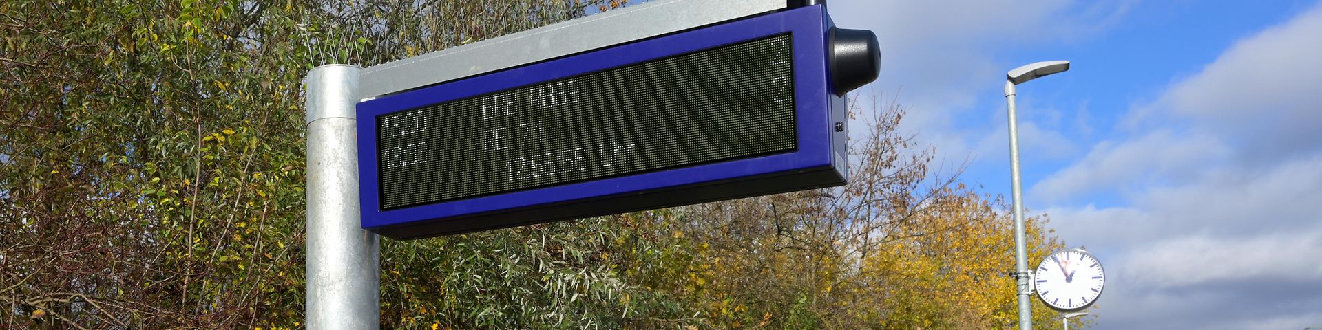 Die neuen, dreizeiligen Anzeiger auf den Bahnsteigen sind mit einer höheren Auflösung ausgestattet, dadurch sind die Informationen besser zu lesen. Sie bieten eine Übersicht über Abfahrtszeit und Reiseziel mindestens der nächsten zwei abfahrenden Züge. Anders als bisher wird auch die tatsächliche Abfahrtszeit neben der geplanten dargestellt. Menschen mit Sehbehinderung profitieren von Ansagetastern an den Geräten, die auf Knopfdruck die Inhalte des Displays vorlesen. Die digitalen Aushänge für Baukommunikation (DAB) informieren Reisende über geplante Abweichungen vom Fahrplan, die durch Baustellen verursacht werden.