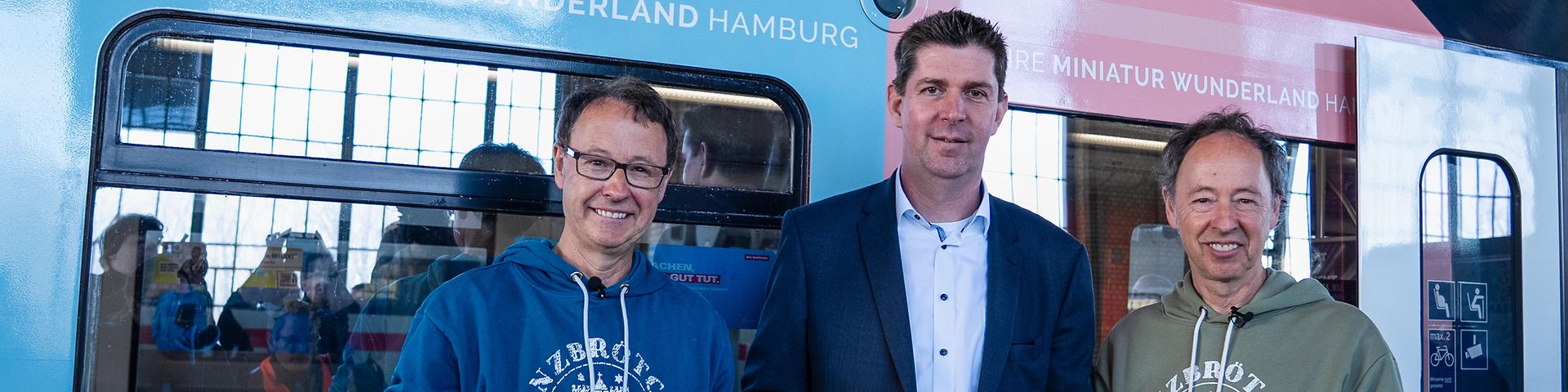 Hamburg bekommt zum 25. Jubiläum des Miniatur Wunderlands einen neuen rollenden Botschafter: Ab heute fährt die bunte S-Bahn im Miniatur Wunderland-Design durch Hamburg. Zur Premierenfahrt waren S-Bahn-Chef Jan Schröder und die Miniatur Wunderland-Gründer Gerrit und Frederik Braun mit an Bord. Im Miniatur Wunderland fährt die identisch gestaltete S-Bahn als Modell – im Maßstab 1:87.