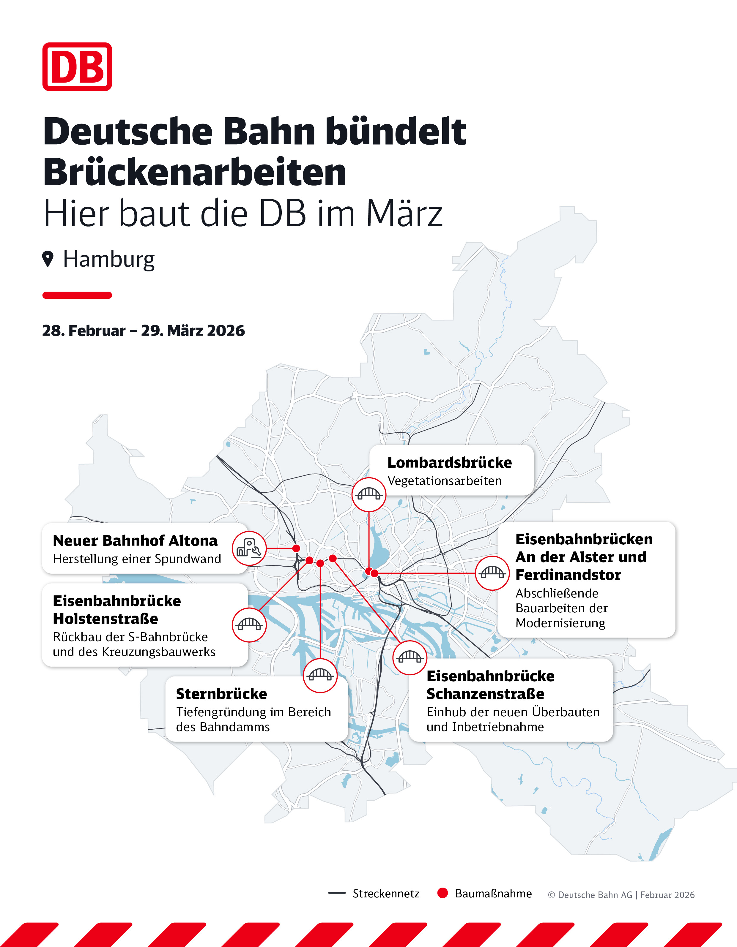 Die Deutsche Bahn investiert in ihre Infrastruktur und für eine starke Schiene in Niedersachsen. Die restlichen Bauarbeiten an der Strecke Oldenburg–Rastede sowie an der Eisenbahnbrücke Alexanderstraße können nun Ende des Monats mit Beginn einer entsprechenden Sperrpause fortgesetzt werden.