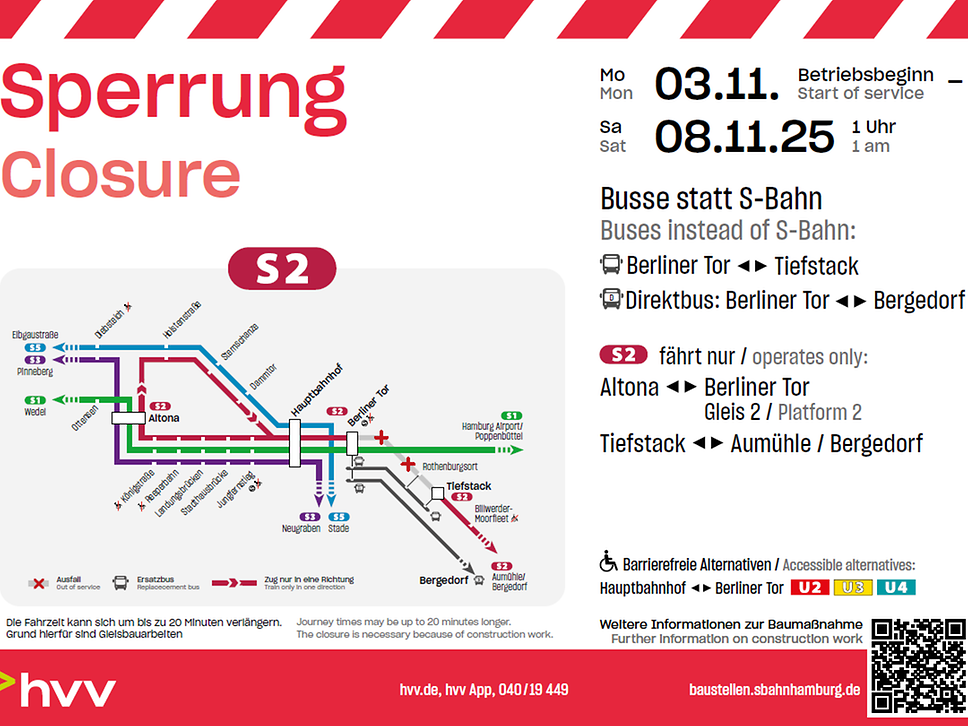 Aufgrund dieser und weiterer Baustellen wird die Bahn das Angebot auf einigen Verbindungen zeitweise anpassen, Umleitungen und Fahrplanänderungen sind bereits in den Fahrplan eingearbeitet oder werden anlassbezogen bekannt gegeben. Die DB bittet ihre Fahrgäste um Verständnis und Entschuldigung für die mit den Bauarbeiten verbundenen, unvermeidlichen Beeinträchtigungen.