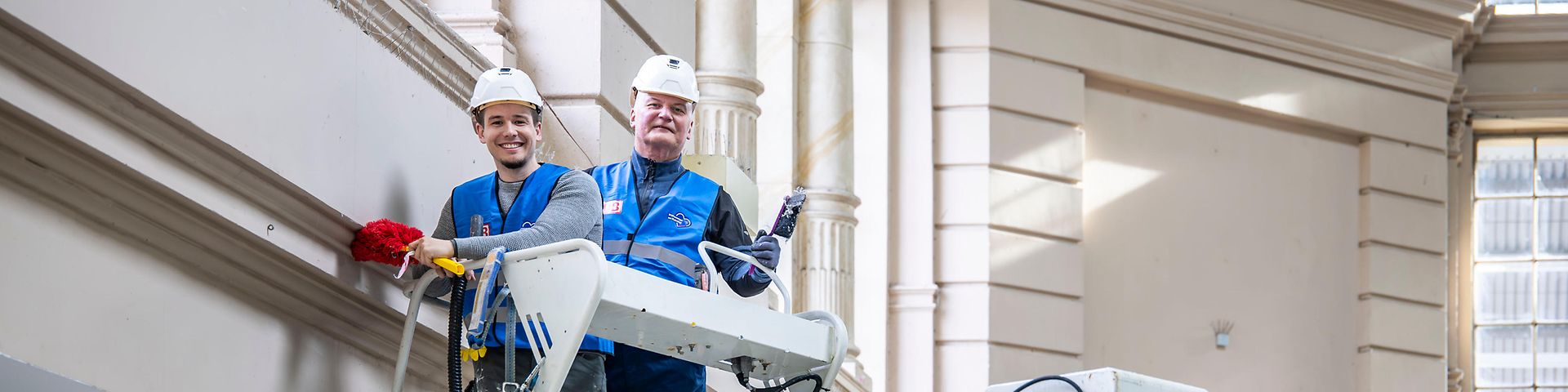 Sie nehmen sich Vorplatz, Straßenbahnhaltestelle, Parkplatz, Bahnsteige, Treppen, Tunnel, Aufzüge, Glasflächen, Bedienflächen an Automaten, Mobiliar und Vitrinen vor. Außerdem streichen die DB-Mitarbeitenden einige Säulen und Wände, und sie entstauben jedes einzelne Pflanzenblatt. Mieterinnen und Mieter in Läden und auf Flächen im Bahnhof packen ebenfalls mit an.