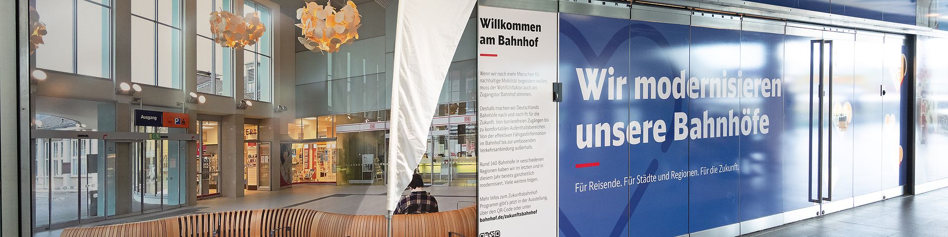 Was ist ein Zukunftsbahnhof?Ein Zukunftsbahnhof ist ein aus einem Guss entwickelter und modernisierter Bahnhof. Ein Zukunftsbahnhof zielt darauf ab Bahnhöfe zu kundenfreundlicheren, effizienteren und umweltfreundlicheren Orten zu machen, die den Bedürfnissen der Reisenden und der Gesellschaft gerecht werden. Auch stärkt er die Rolle der Station als Identitätsstifter in der Region. Für eine verbesserte Anschlussmobilität und Vorplatzsituation arbeitet die DB vor allem partnerschaftlich mit den Ländern, Städten und Kommunen zusammen. Ein Team aus Architekten, Landschaftsplanern und Bahnexperten unterstützt Kommunen beim Entwickeln konkreter Vorplatz-Konzepte, klärt Flächenverfügbarkeiten und berät zu passenden Fördermitteln bei Bund und Ländern.