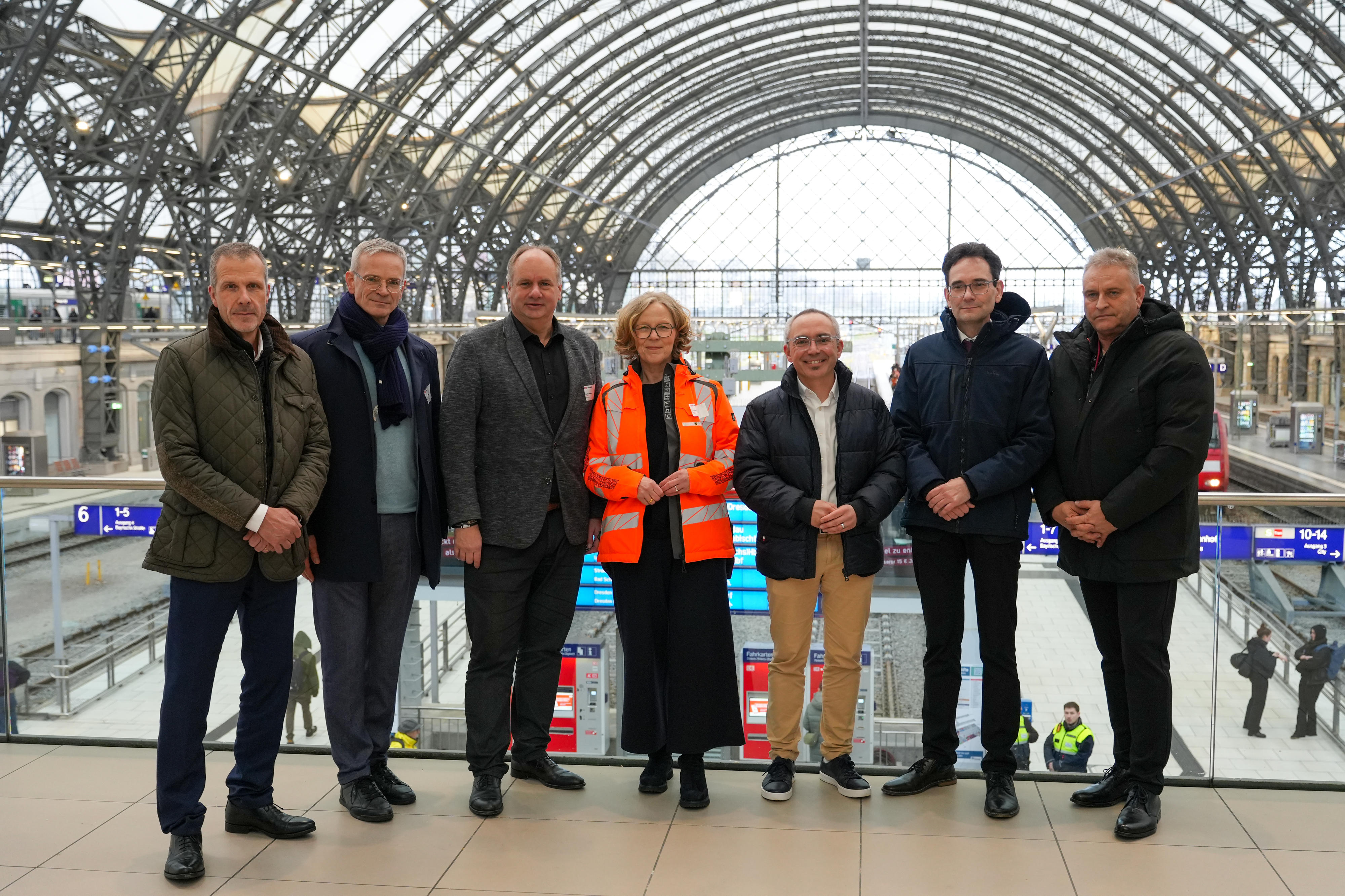 Einweihung Hallendach Dresdner Hauptbahnhof - v.l. Martin Walden Konzernbevollmächtigter DB Südost, Markus Reichel MdB, Dirk Hilbert OB Dresden, Regina Kraushaar Ministerin SMIL, Ralf Thieme Vorstand InfraGO Bahnhöfe, Frank Engel BMV und Heiko Klaffenbach Bahnhofsmanager.