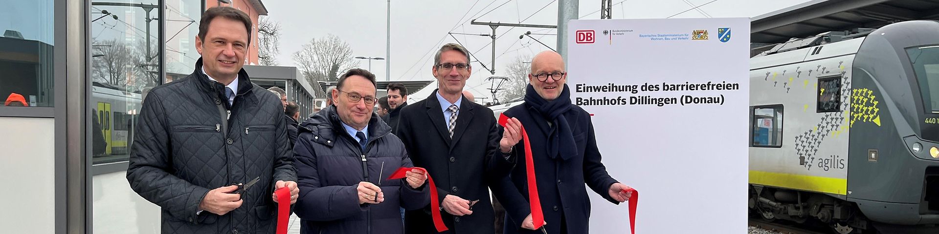 Der barrierefreie Ausbau des Bahnhofs Dillingen ist Ende 2025 bis auf wenige Restarbeiten erfolgreich abgeschlossen worden. Mit der Fertigstellung steht den Reisenden ein rundum modernisierter und vollständig barrierefreier Bahnhof zur Verfügung. Insgesamt wurden rund 21,5 Millionen Euro aus Mitteln des Bundes, des Freistaats Bayern, der Stadt Dillingen und der Deutschen Bahn investiert.Im Rahmen der umfassenden Modernisierung hat die DB sowohl den Haus- als auch den Mittelbahnsteig komplett neu gebaut und erhöht. Die Bahnsteige sind über die neue Personenunterführung dank moderner Aufzüge barrierefrei erreichbar. Auch können die Fahrgäste nun stufenfrei in die Züge einsteigen. Ein taktiles Blindenleitsystem erleichtert sehbehinderten Menschen die Orientierung. Diese zeitgemäße Bahnsteigausstattung mit einem neuen Informations- und Wegeleitsystem sowie einer Überdachung am Bahnsteig 2/3 und einem Wetterschutzhaus am Bahnsteig 1 erhöht den Komfort und die Sicherheit bei jedem Wetter.Ulrich Lange, Parlamentarischer Staatssekretär beim Bundesminister für Verkehr: „Der vollständig barrierefreie Ausbau des Bahnhofs Dillingen zeigt, was bewegt werden kann, wenn alle Akteure trotz der vielen Unabwägbarkeiten und Verzögerungen gemeinsam anpacken. Der Bund hat dieses Vorhaben mit 13,8 Mio. Euro im Rahmen der Förderinitiative zur Attraktivitätssteigerung und Barrierefreiheit von Bahnhöfen gefördert und ermöglicht damit für viele Menschen in Dillingen mehr Selbstständigkeit und Komfort“.Bayerns Staatsminister für Wohnen, Bau und Verkehr, Christian Bernreiter, vor Ort vertreten von Alexander Bonfig, Abteilungsleiter Schienen- und Luftverkehr: „Barrierefreiheit an Bahnhöfen ist ein zentrales Anliegen des Freistaats. Um wie hier in Dillingen das Tempo deutlich zu erhöhen, beteiligen wir uns deshalb freiwillig finanziell am Ausbau und stellen dafür jährlich bis zu 50 Millionen Euro zur Verfügung. Damit schaffen wir mehr Barrierefreiheit in Bayern und einen attraktiven Bahnverkehr für alle.“Heiko Büttner, DB-Konzernbevollmächtigter für den Freistaat Bayern: „Wir möchten, dass mehr Menschen Bahn fahren. Dafür machen wir unsere Bahnhöfe attraktiver und komfortabler – so auch in Dillingen. Ob im Rollstuhl, mit Kinderwagen oder Fahrrad: Der Bahnhof ist nun für alle gleichermaßen nutzbar – ein großer Gewinn für die gesamte Region.“Frank Kunz, Oberbürgermeister der Stadt Dillingen: „Für Dillingen als ‚Stadt der Caritas‘ ist es eine gute Nachricht, dass der schon lange von Stadt und Bürgerschaft geforderte barrierefreie Ausbau nun abgeschlossen werden konnte. Mit Überzeugung hat sich die Stadt an den Kosten beteiligt und auf diese Weise den Durchstich von der Gleismitte in Richtung Norden ermöglicht. Danken möchten wir ausdrücklich dem Parlamentarischen Staatssekretär, unserem MdB Ulrich Lange, der sich mit großem Einsatz und Erfolg für die Umsetzung und Finanzierung dieser Maßnahme stark gemacht hat. Nachdem dieser Meilenstein nun erreicht ist, erwarten wir jetzt mit Interesse die Planungen der Bahn für die Aufwertung des Dillinger Bahnhofs im angekündigten ‚Programm Zukunftsbahnhöfe‘.“