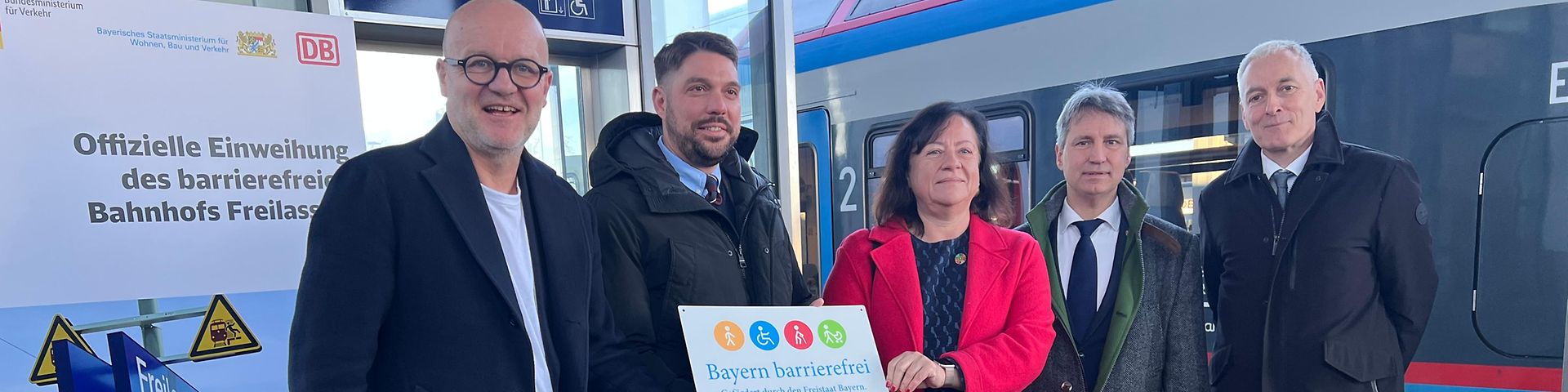 Bayerns Staatsminister für Wohnen Bau und Verkehr, Christian Bernreiter, MdL, vor Ort vertreten von Amtschef Dr. Thomas Gruber: „Der Bahnhof Freilassing ist ein wichtiger Verkehrsknoten. Wir haben als Freistaat daher sehr auf den barrierefreien Ausbau gedrängt und übernehmen auch fast 70 Prozent der Gesamtkosten. Für Reisende mit Einschränkungen, Familien mit Kinderwagen, ältere Menschen oder auch Fahrgäste mit schwerem Gepäck sind die barrierefreien Umbauten ein Segen. Ich freue mich außerdem, dass die Stadt den Umbau zum Anlass nehmen möchte, um auch das Bahnhofsumfeld aufzuwerten.“