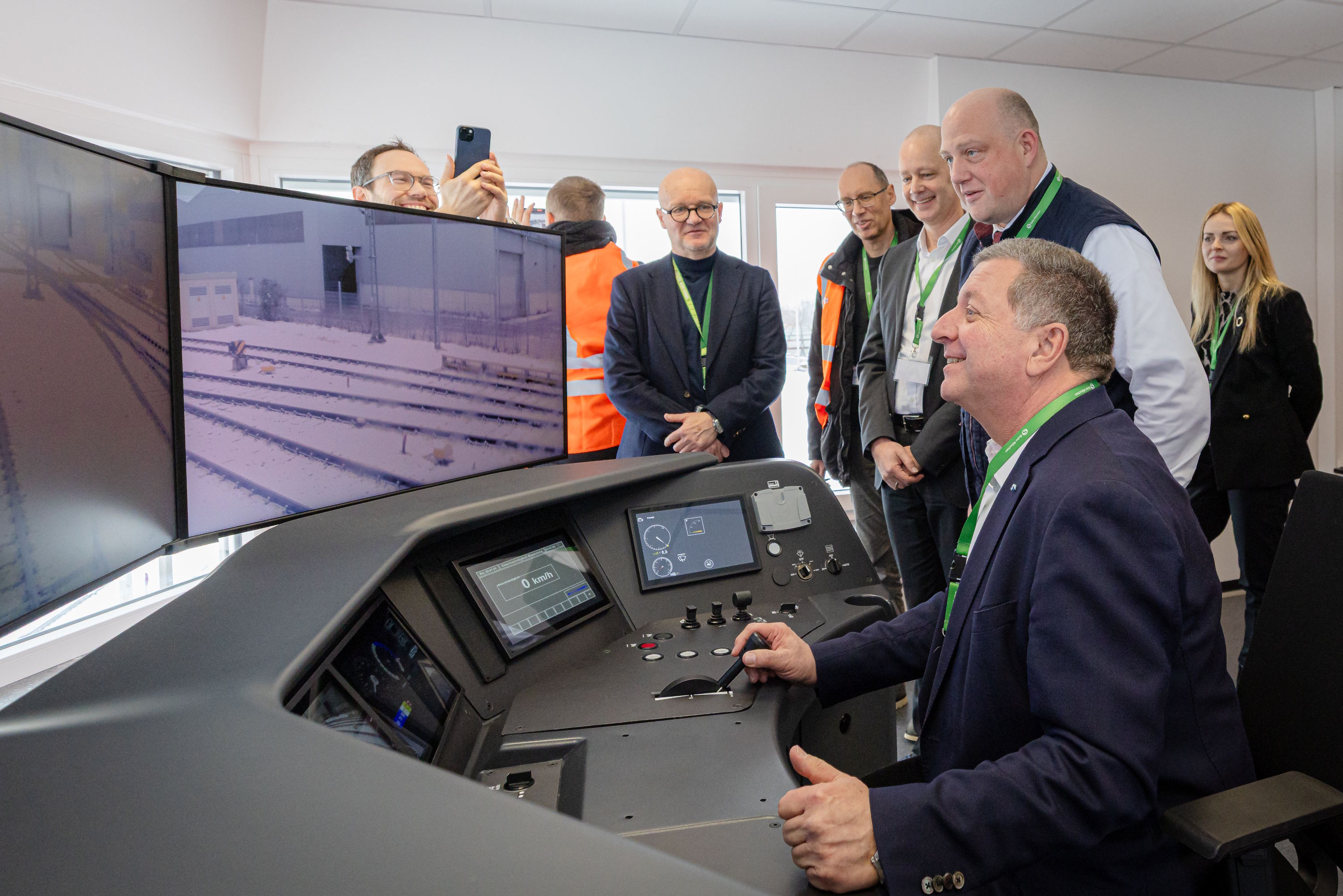 Harmen van Zijderveld, DB-Konzernvorstand Regionalverkehr: „Züge per Fernsteuerung zu rangieren, kann unsere Mitarbeitenden entlasten und die Abläufe in unseren Werken erheblich beschleunigen. In nur vier Monaten haben wir das Testsystem auf die Schiene gebracht: vom lokalen 5G‑Netz bis zum Bedienplatz und der Technik im Zug. Damit beweisen wir, dass technische Innovationen auch mit bestehenden Fahrzeugen realisierbar sind.“